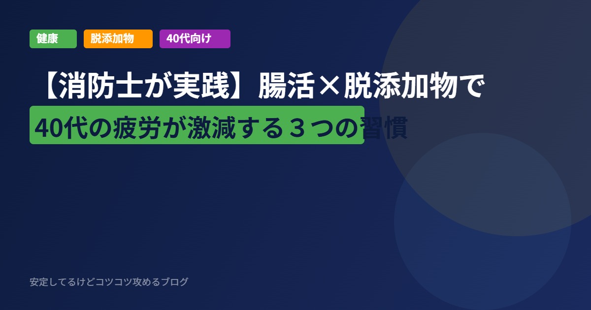 今回は、2026年の最新トレンド「シン腸活」と「脱添加物」を組み合わせ、40代公務員の私が実践して本当に体が変わった方法を共有します。救急現場のリアルな視点と、インデックス投資の思想に通じる「コスパ×長期視点」の健康術を、できる限り具体的にお届けします。