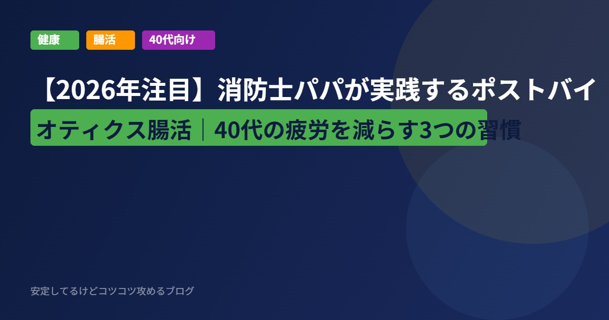 今回は、2026年に入ってから注目度が一気に高まっている「ポストバイオティクス」を軸に、私が実際に取り入れて疲労感が大きく減った腸活ルーティンを、お仲間のパパ目線でお話します。