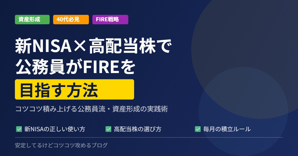 公務員という安定した立場を活かしながら、新NISA×高配当株でコツコツ資産を積み上げていきましょう。私自身もFIREを目指して日々実践中です。一緒に頑張りましょう!